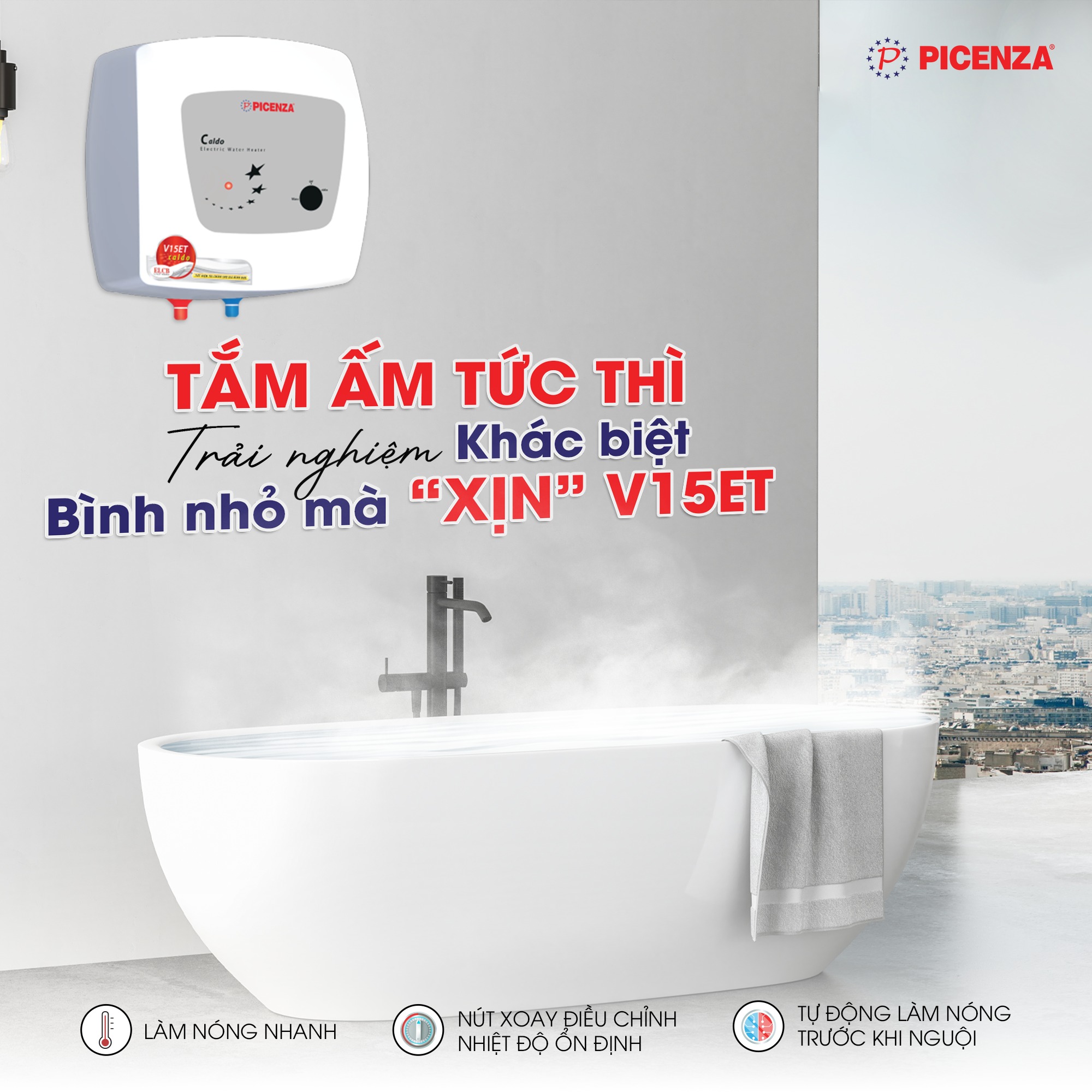 Bình nước nóng kiểu vuông Picenza V15ET